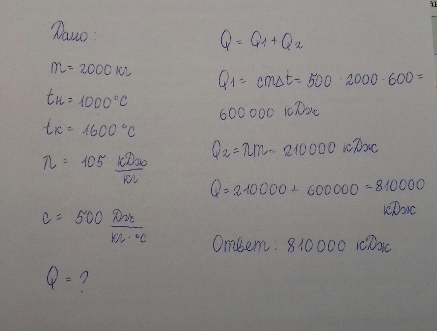 скільки теплоти необхідно для плавлення сталь масою 2 т узятого при температурі 1000градусів Цельсія .