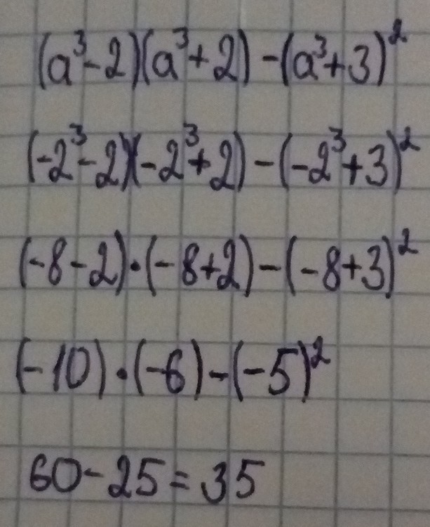 Упростите выражение (a^3-2)(a^3+2)-(a^3+3)^2 и найдите его значение,