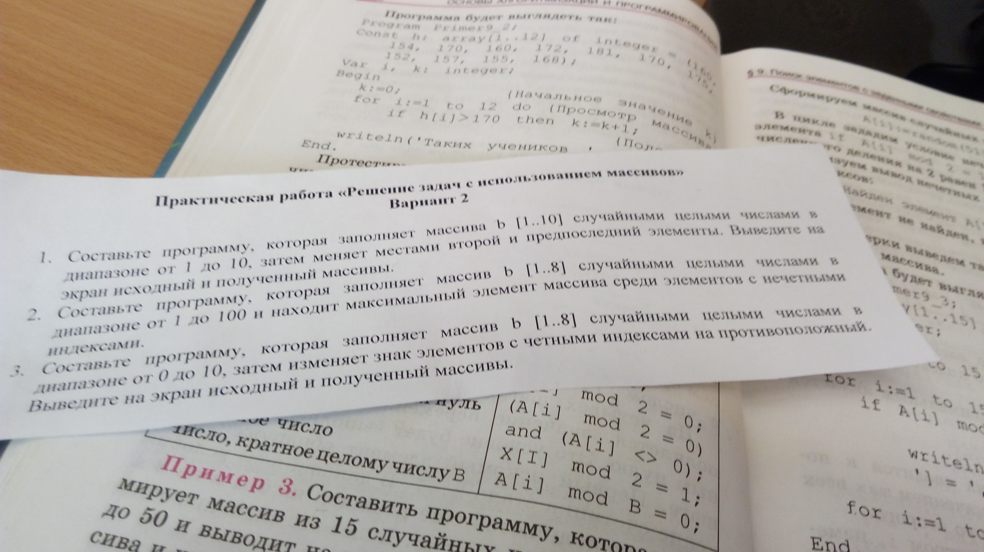 var a:=ArrRandom(10,1,10); Println('Исходный массив:'); a.Println;