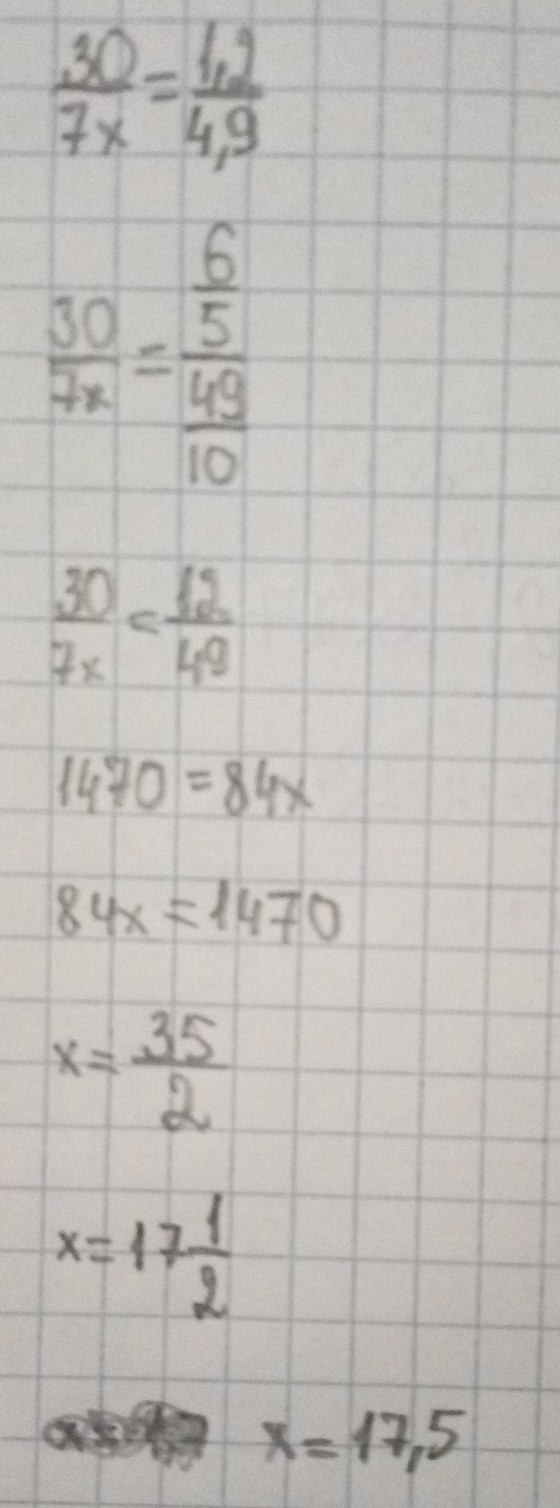 30/7(*х)=1,2/49⇒30*49=1470=7*1,2*x=8,4*x⇒x=1470/8,4=175.