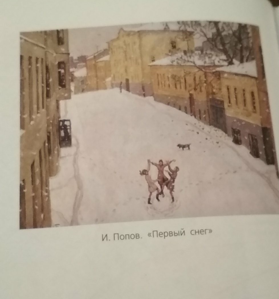 Однажды я шёл по улице. И увидел знакомую мне картину, такую что нарисовал Попов "Первый снег". Тогда у меня было плохое настроение, но увидев это, оно сразу же поднялось.