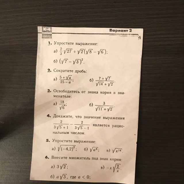 номер 5б корень из х в квадрате всегда = модулю х аналогично 5а = модулю из - 4.2 =4.2 и 5в соответственно = х в седьмой степени