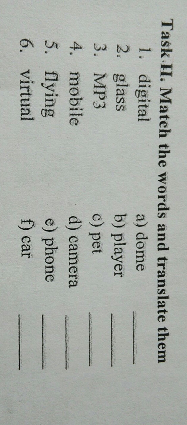 1 d-цифровая камера. 2 a -стеклянный купол 3 b мп 3 плеер 4 е мобильный телефон 5 f летающая машина 6 c виртуальный питомец