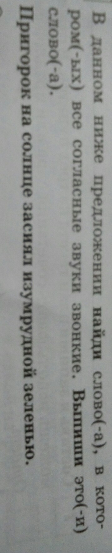 В даном предложении найди слова в котором в согласные звуки звонкие:Пригорок на солнце засиял изумрудной зеленью