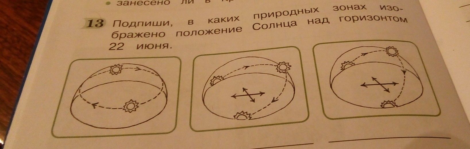 Подпиши в каких природных зонах изображено положение Солнца над горизонтом 22 июня