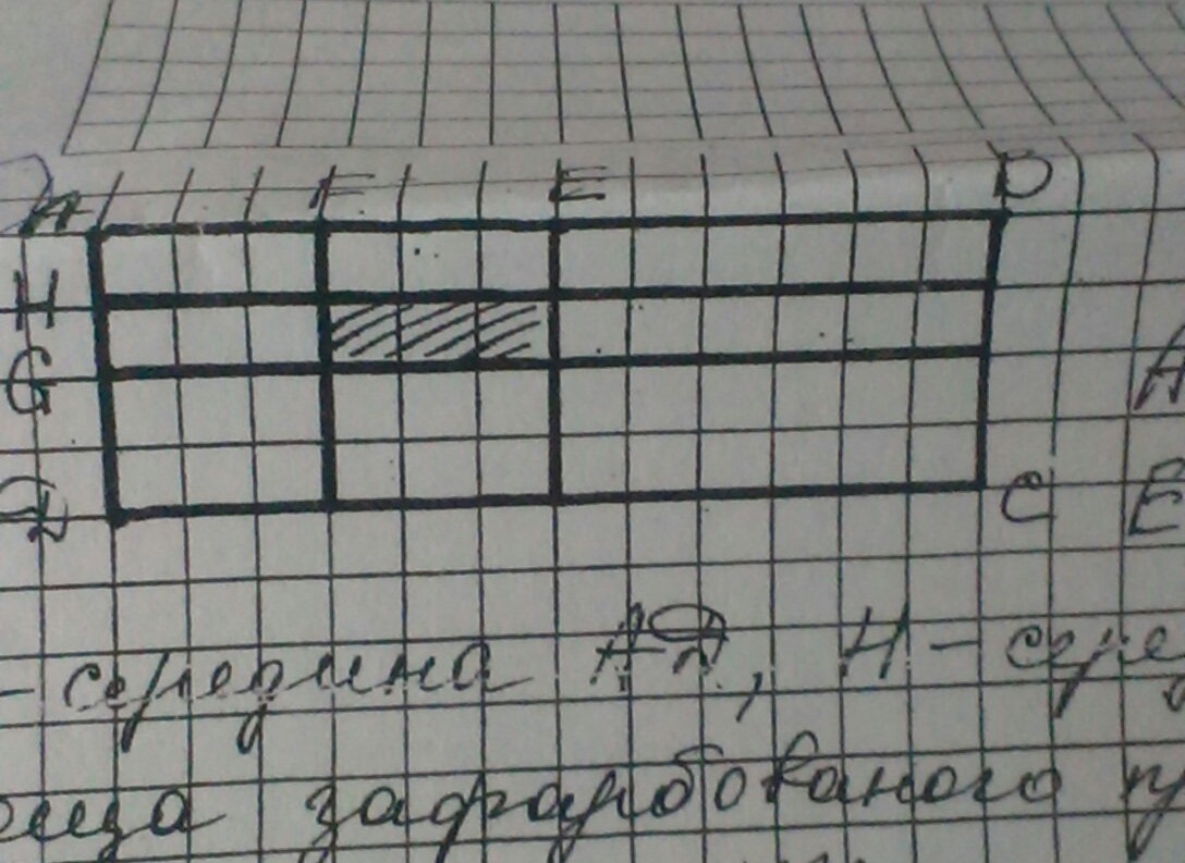ABCD- прямоугольник,AB-16 см,BC-4.E-середина AB,F- середина AE,G- середина- AD,H- середина AG.чему Равняется площа закрашеного прямоугольника?