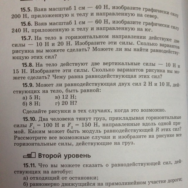 2 схема: то же изображение тела квадратиком, от него две стрелки, на этот раз в одну сторону, на одной (более длинной) пишешь 150Н, на другой - 100Н. Под схемой пишешь вариант, где равнодействующая равна 250Н (100Н+150Н)