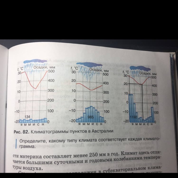 2.Австралия лежит в трёх климатических поясах - субэкваториальном на севере, тропическом в центральной части материка и субтропическом - на юге материка.3.В южном полушарии с декабря по февраль лето. Материк сильно прогревается: средняя месячная температура воздуха достигает 25-30° и более. В южном полушарии с июня по август зима. Средняя температуры на юге +10°С, на севере д+20°С. Пояс высокого атмосферного давления смещается к северу и устанавливается над центром Австралии.4, 5 Лето- Теплые влажные северо-западные ветры, идущие с Индийского океана, приносят обильные осадки (более 1000 мм). Юго-восточные пассаты, дующие с прохладного юга материка, осадков не приносят. На большей части тропического и субтропического поясов летом устанавливается жаркая сухая погода. Зима- значительная часть тропического и субэкваториального поясов находится под влиянием сухого тропического воздуха и почти не получает осадков. На востоке материка осадки приносит тропический влажный воздух пассатов, дующих с Тихого океана. Осадки зимой выпадают и на крайнем юге материка, попадающем под влияние влажных Западных ветров умеренных широт.