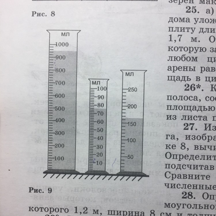 Физика 7 класс. С решением и формулой . 1-ая фотка задача. Вторая- мензурка по середине