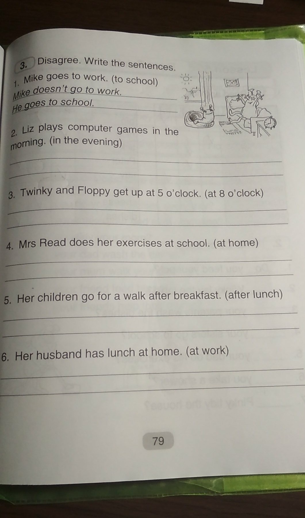 2. Liz doesn't play computer games in the morning. She plays in the evening.
