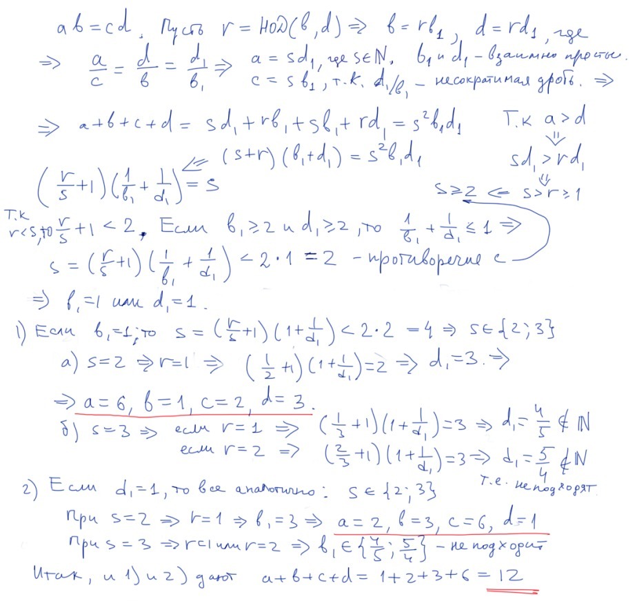 Даны различные натуральные числа a, b, c, d, для которых выполняются