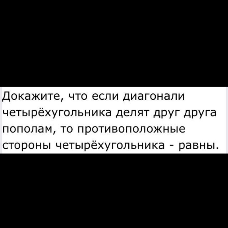 Для четырехугольника ABCD мы знаем, что AO = OC и BO = OD. Тогда треугольники AOD и BOC также равны (по признаку "сторона-угол-сторона", AO = OC; BO = OD и углы DOA = BOC – вершина), поэтому AD = BC. Аналогично треугольники AOB и DOC равны, откуда AB = CD