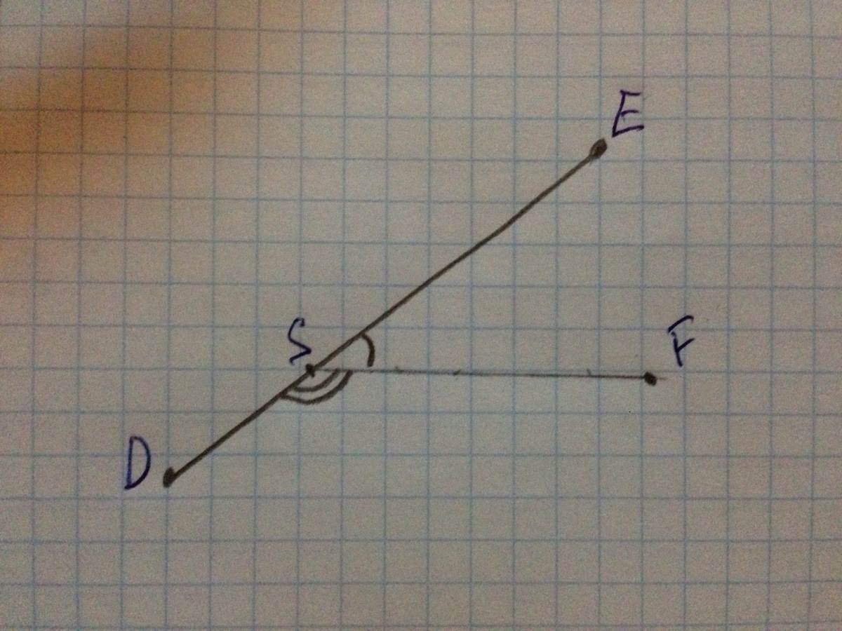 на прямой DE отметьте точку S и точку F не на этой прямой.изобразите луч SF.изобразите все образовавшиеся углы