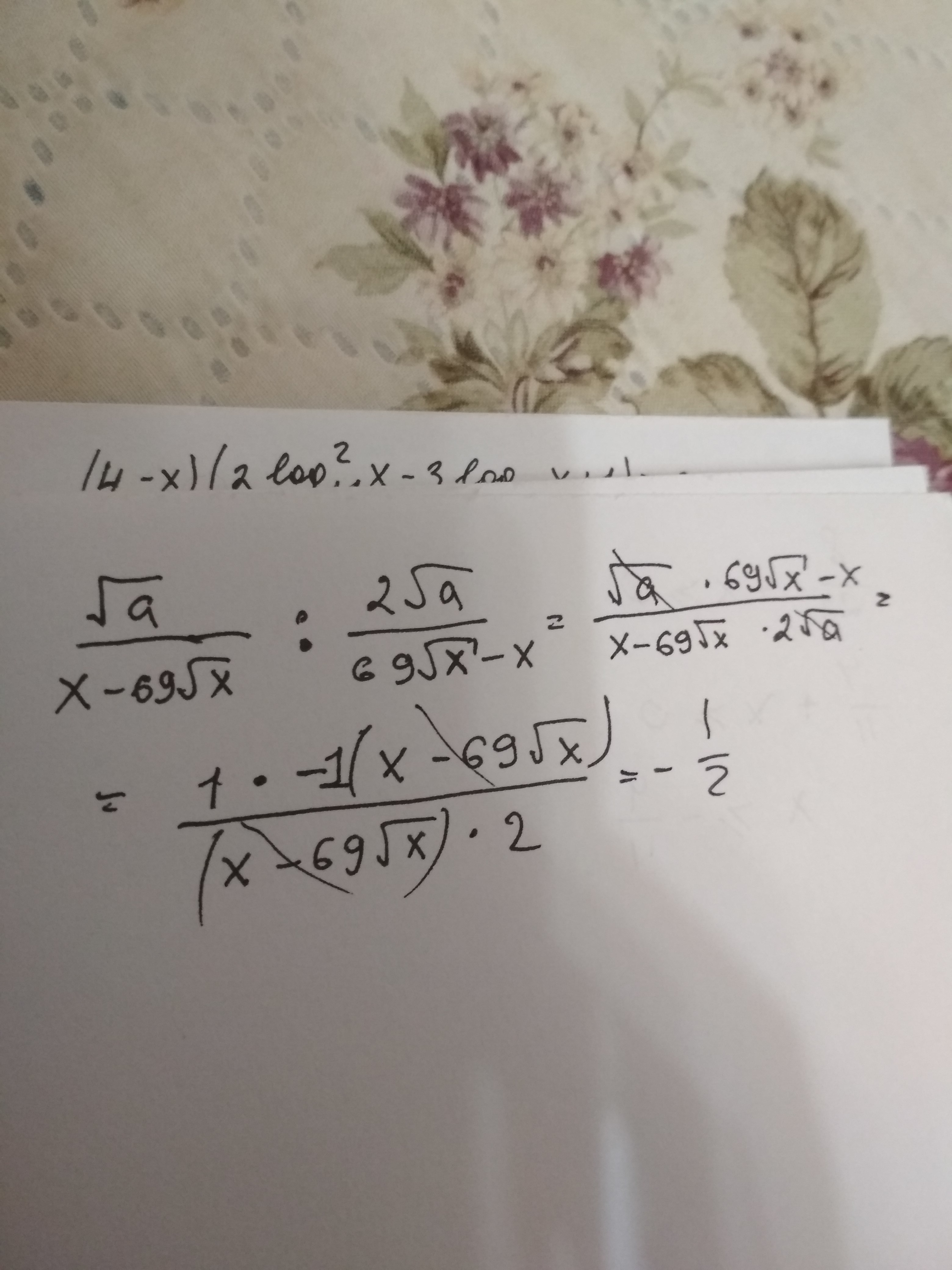 Упрости выражение : дробь √а вверху и внизу х-69√х одну дробь делить на дробь 2√а вверху и внизу 69√х-х