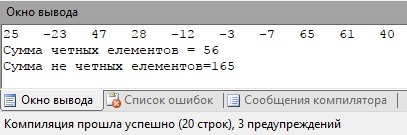 writeln('Сумма четных елементов = ',sum);