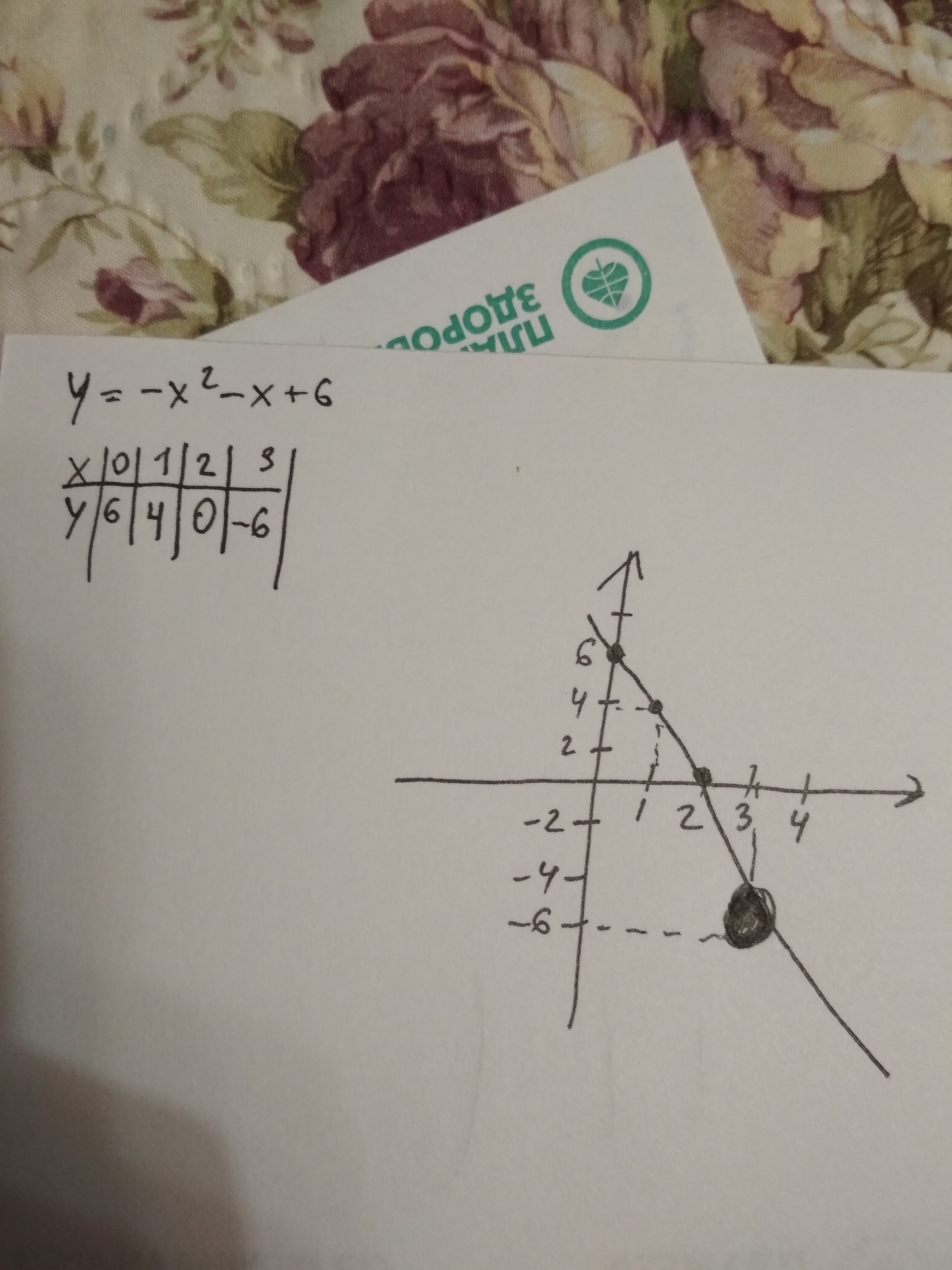 Помогите срочно решить! Постройте график функции у=-х во второй степени-х+6. Укажите: