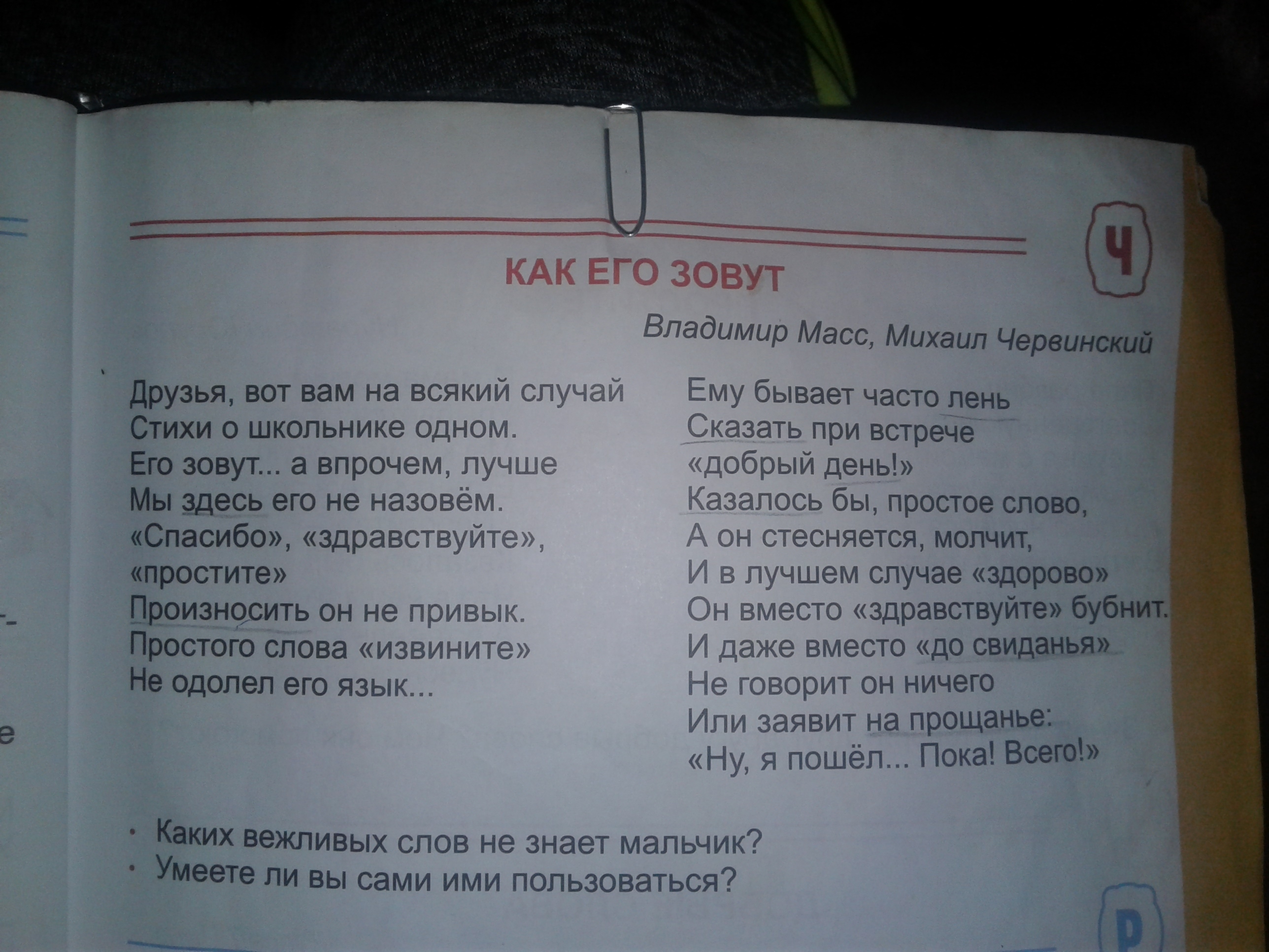 Выпишите из сттихотворения <<как его зовут >>в.масса и М.Червинского слова с мягким знаком. Мягкий знак подчеркните