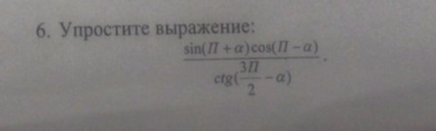 sin(π+а)-cos(π-a) /ctg(3(π/2)-a) =(-sina+cosa)/tga это ответ