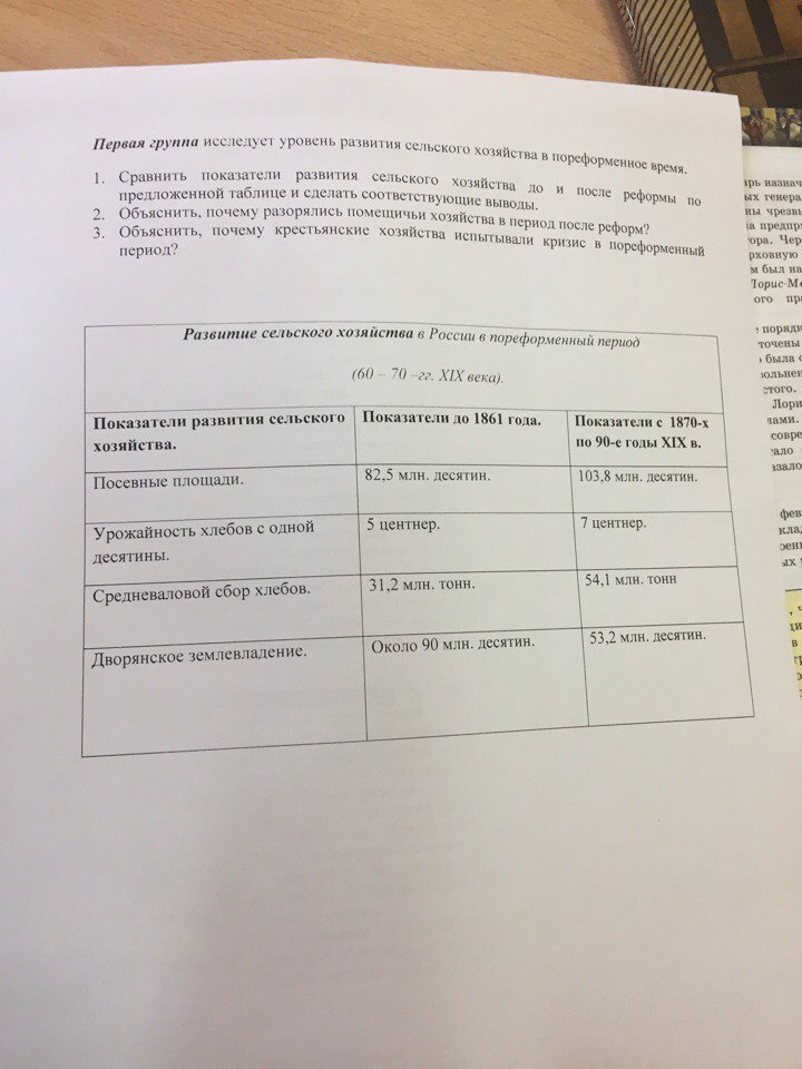 1.сравнить показатели развития сельского хозяйства до и после реформы.