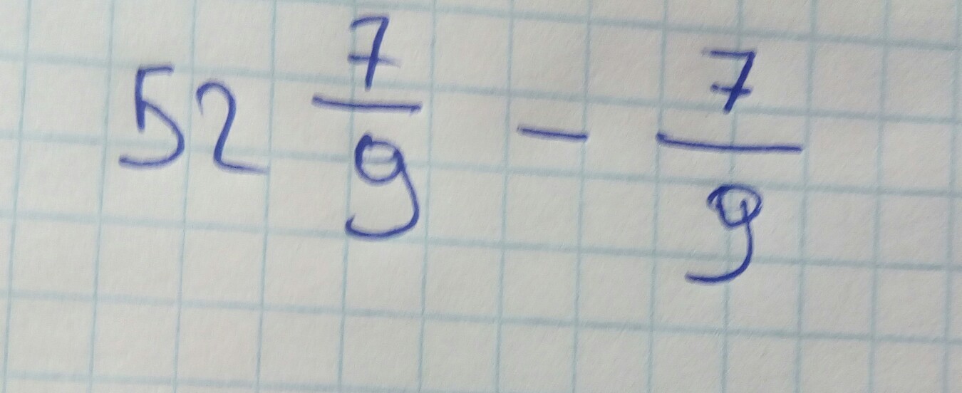 т.к. дроби с одинаковым знаменателем, то 7/9-7/9 будет 0 и останется только целая часть 52
