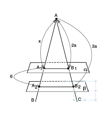 Параллельные плоскости альфа и бета пересекают сторону АВ угла ВАС соответственно в точках А1 и А2, а сторону АС этого угла в В1 и В2. Найти АА1 если А1А2=6, АВ2:АВ1=3:2 ? помогите срочно нужно