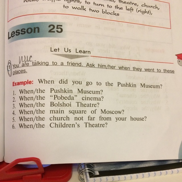 Перевод задания: Ты разговариваешь с другом. Спроси его/её когда они ходили в эти места.