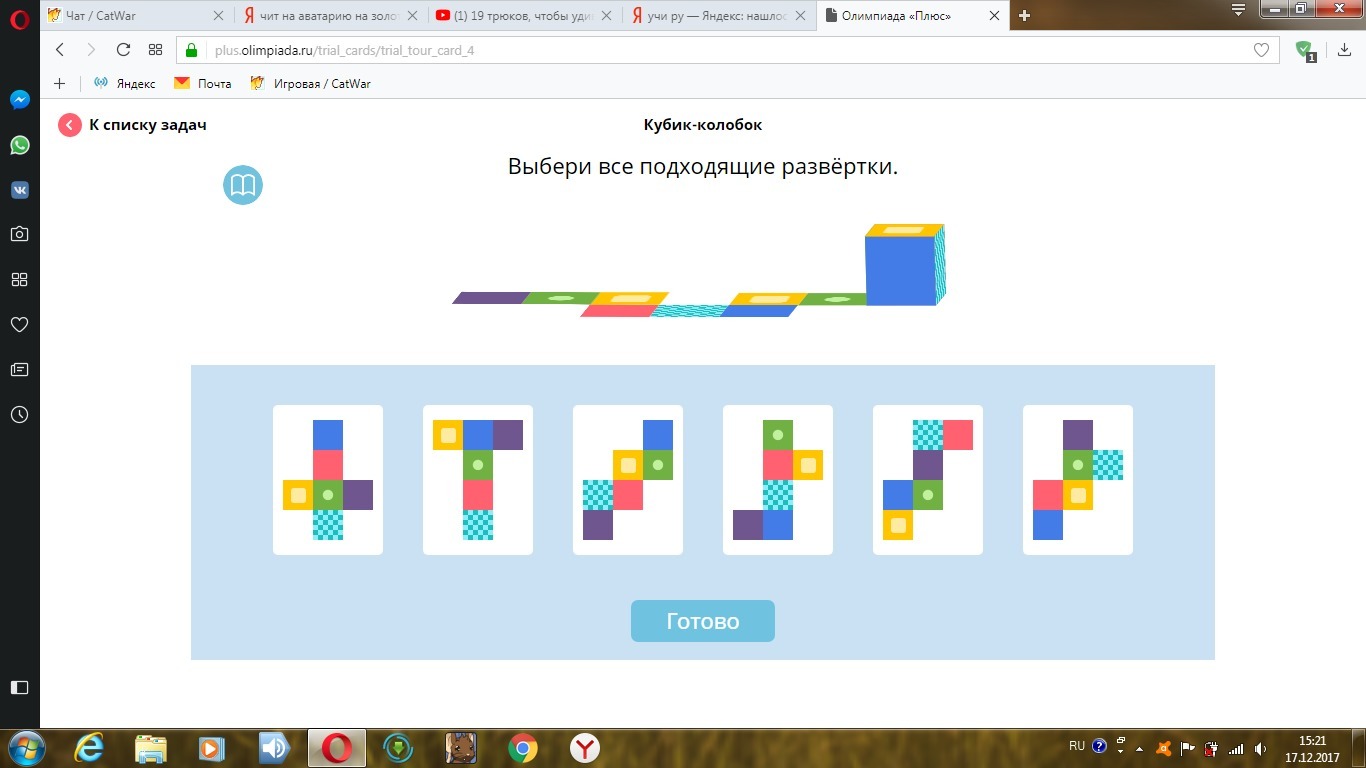 Если рассмотреть то синий квадрат и жёлтый стоят рядом... то, макет для создания куба 1 или 2, но учитывая вот это расположение, можно сказать 2 картинка будет верна (вторая слева)