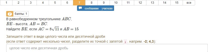 ВЕ будет высотой, медианой и бесиктрисой, т.к треугольник равнобедренный