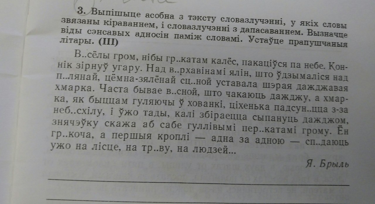 Вясёлы гром, нібы грукат калёс, пакаціўся па небе. Коннік зірнуў угару. Над верхавінамі ялін, што ўздымаліся за палянай цёмна-зялёнай сцяной, уставала шэрая дажджавая хмарка. Часта бывае вясной, што чакаюць, чакаюць дажджу, а хмарка, як быццам гуляю чы ў хованкі, ціхенька падсунецца з-за небасхілу i ўжо тады, калі збіраецда сыпнуць дажджом, знячэўку скажа пра сябе гуллівымі перакатамі грому. Ён грукоча, а першыя кроплі — адна за адной — ападаюць ужо на лісце, на траву, на людзей…