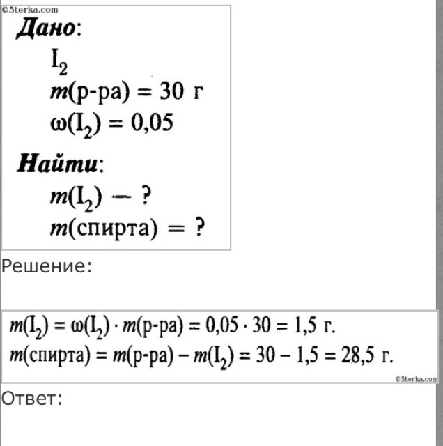 сколько граммов йода и спирта нужно взять для приготовления 30 г пятипроцентного раствора йодной настойки
