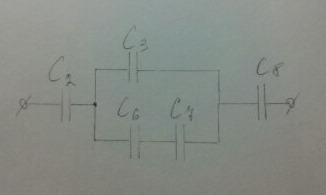 Решите задачу. Дано u-250 C2-50 мКФ С3-40 мКФ C6- 50 мКФ C7- 150 мКФ C8-60мКФ . . 1. Определить напряжение на каждом конденсаторе U1, U2…U8;