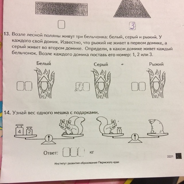 Т. К. На 1 чашке весов 4+2=6кг, а на второй 2 белки значит 1 белка 3кг, то на 1 чашке 2 весов 4 кг значит мешок 4 кг