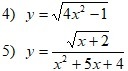 5) здесь в числителе корень и что делать уже знаем, в знаменателе квадратное уравнение и оно не должно равняться нулю, т.к. делить на нуль нельзя.