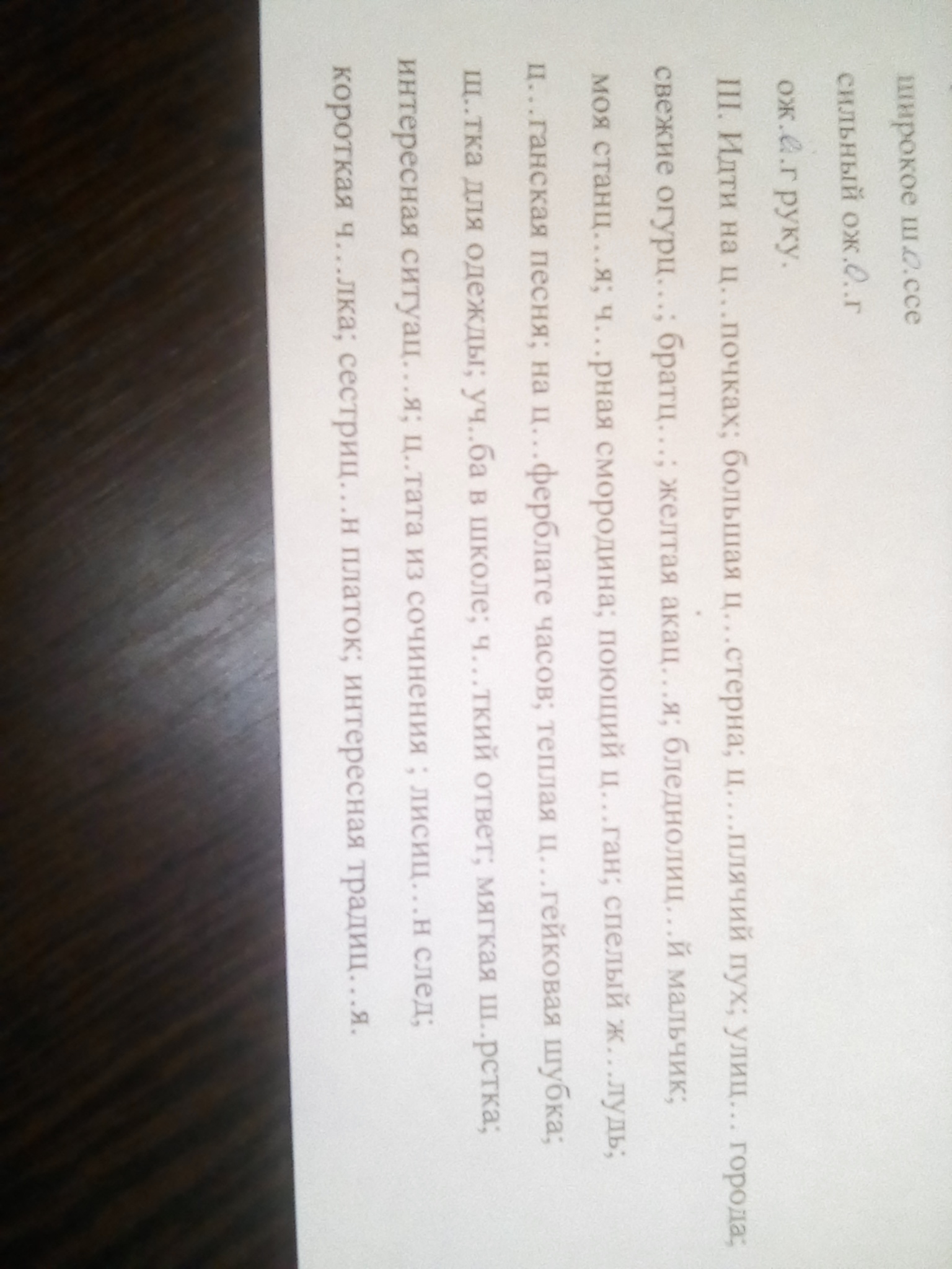 идти на цыпочках; большая цистерна;цыплясий пух ;улицы города ;свежие огурцы; братцы ;жёлтая акация ; бледнолицый мальчик ;моя странция ; чёрная смородина; поющий цыган; спелый жёлудь; цыганская песня ;на циферблате часов ;теплая цигейковая шубка ; щётка для одежды; учёба в школе ; чёткий ответ ;мягкая шёрстка ; интересная ситуация;цитата из сочинения; лисицын след;короткая чёлка ;сестрицын платок ;интересная традиция.