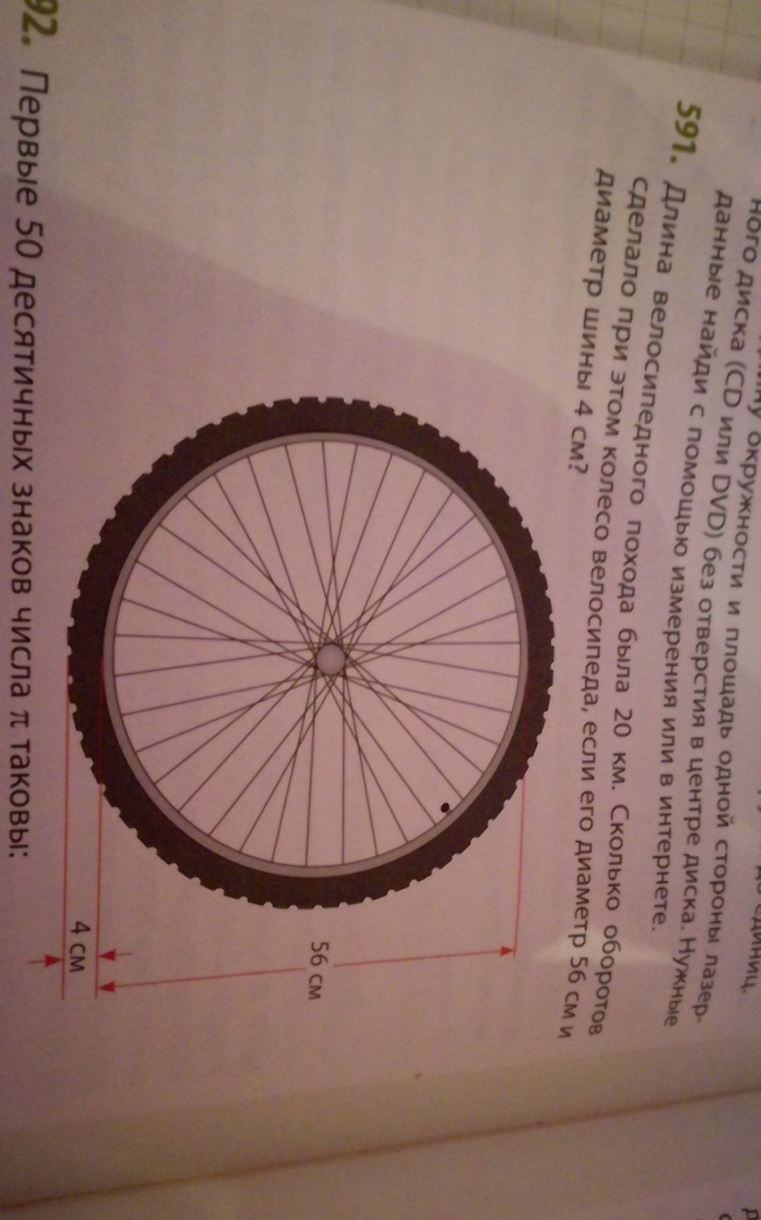 D = 56 + 8 = 64см = 0,64м - диаметр колеса вместе с шиной
