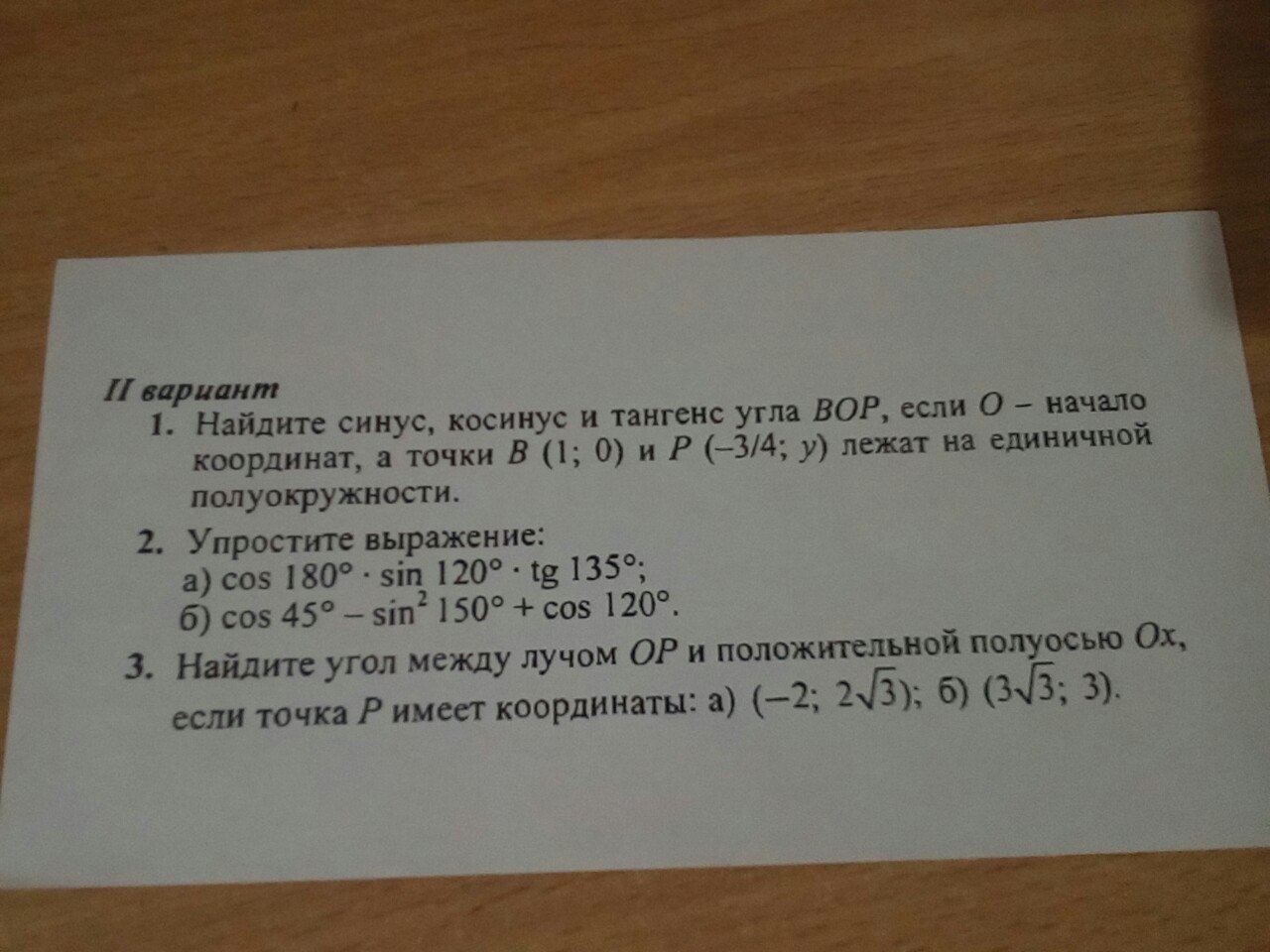 Задание 1. извлекаем корень из координат точки B и получаем (-корень(3)/2, 1/2) то есть 150 градусов
