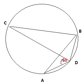 В окружности проведены две пересекающиеся хорды АВ и СD. Известно, что дуга АD равна 40 градусов, а угол ADC равен 60. Найдите угол DBC.