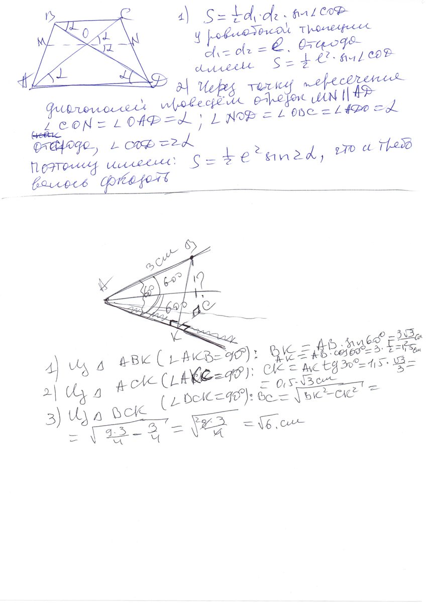 Каждый плоский угол трехгранного угла равен 60 град. На одном из его ребер отложен от вершины отрезок,равный 3 см. и из его конца опущен перпендикуляр на противолежащую грань. Наити длину перпендикуляра.