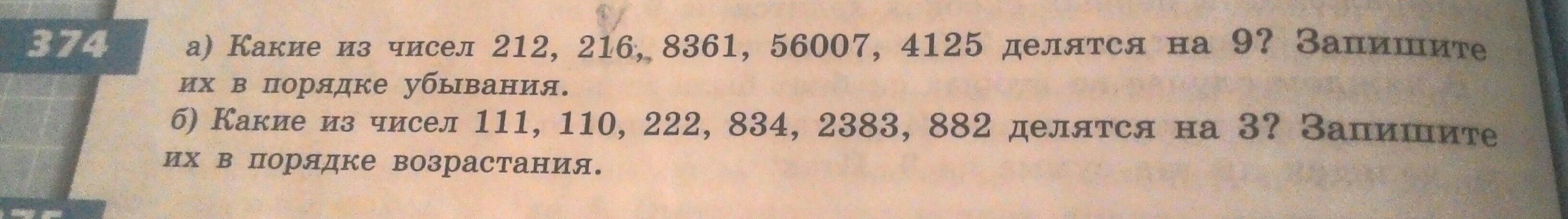 216, 8361, 56007 по скольку ( 2+1+6=9 , 8+3+6+1=18:9=2 , 5+6 +7=18:9=2 ) то что в скобках не надо писать это объяснение