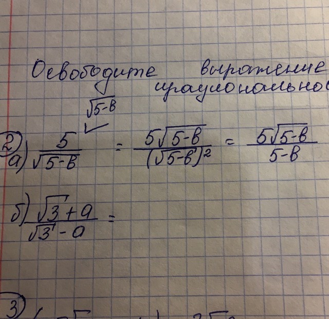 Освободите выражение от иррациональности в знаменателе (под буквой б) по такому же принципу как под А