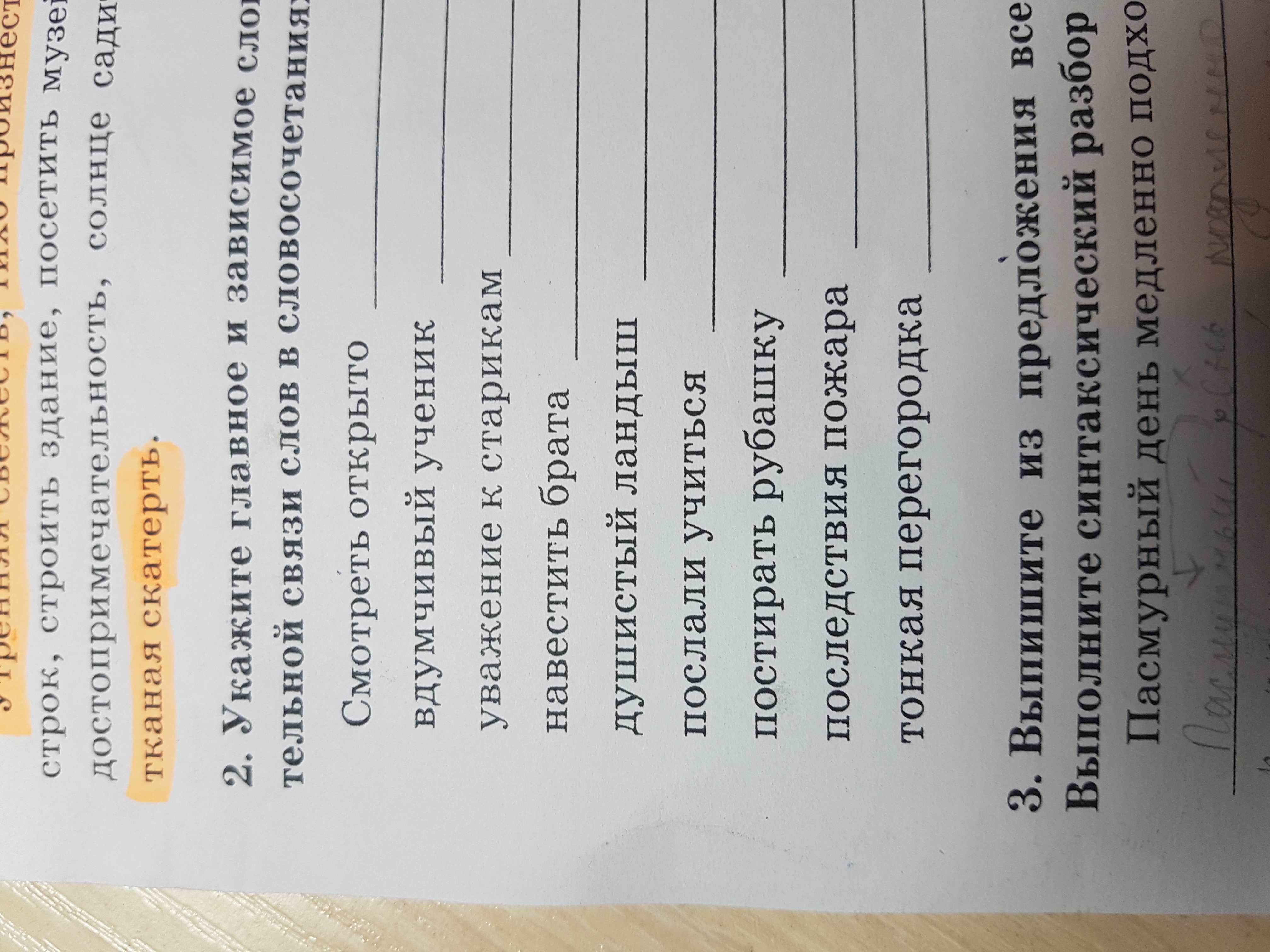 Укажите главное и зависимое слово, определите вид подчинительной связи слов в словосочетаниях.