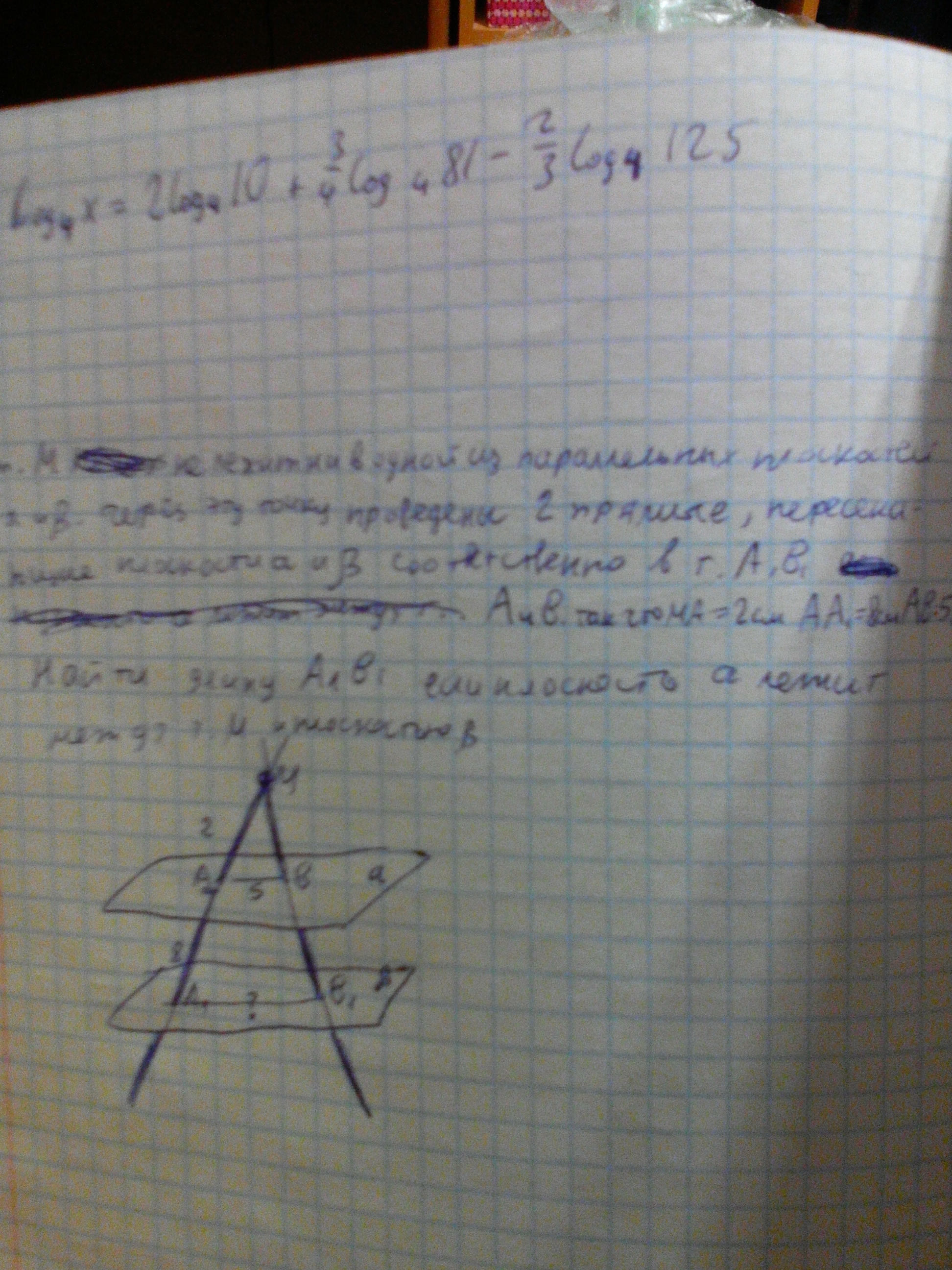 Тут у нас задача с параллельными плоскостями и моим чертежом, и , логарифмы какие-то, их надо упростить и решить..