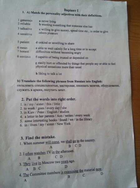 2. This is my little sister.She goes to work everyday.Peter studies English in Kiev.Ann writes letter to her parents avery week.We found some interesting books in the library.My sister lives in New-York.