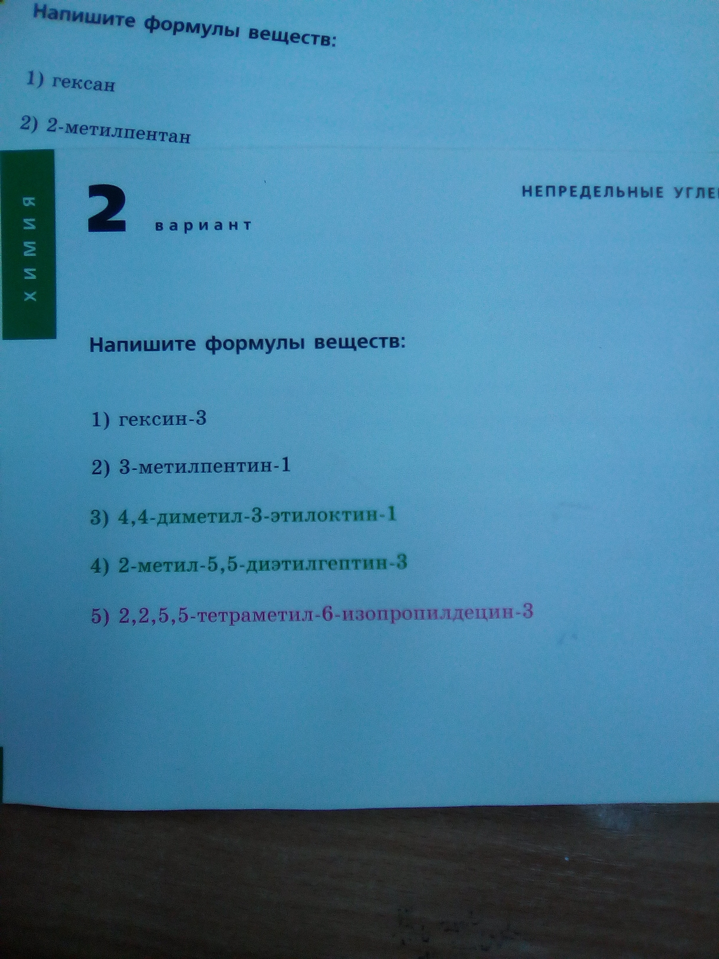 Непредельные углеводороды, алкины. Напишите формулы веществ: гексин-3