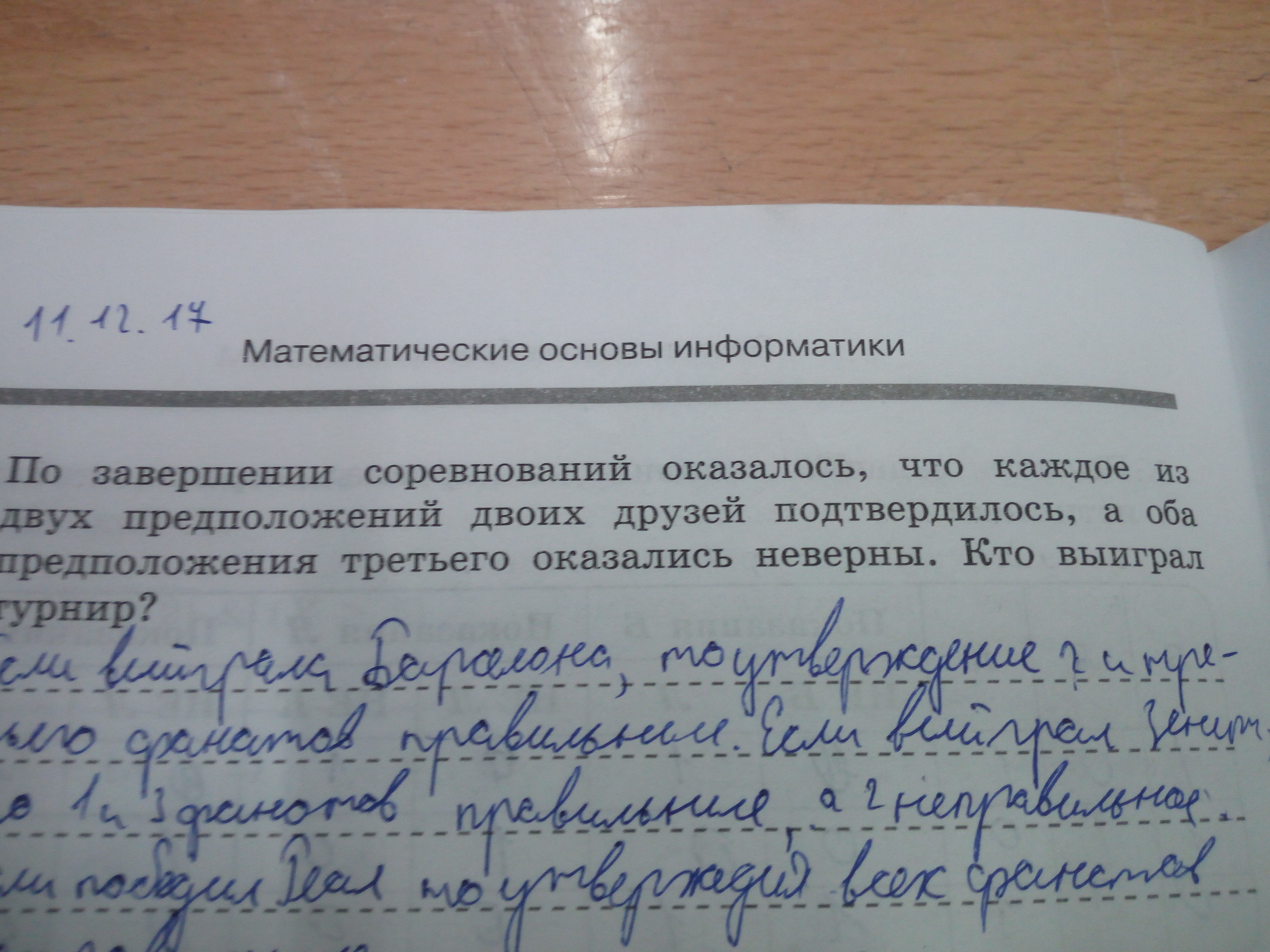 По завершению соревнований оказалось, что каждое из двух предположений двоих друзей подтвердилось, а оба предположения третьего оказались неверны. Кто выиграл турнир?