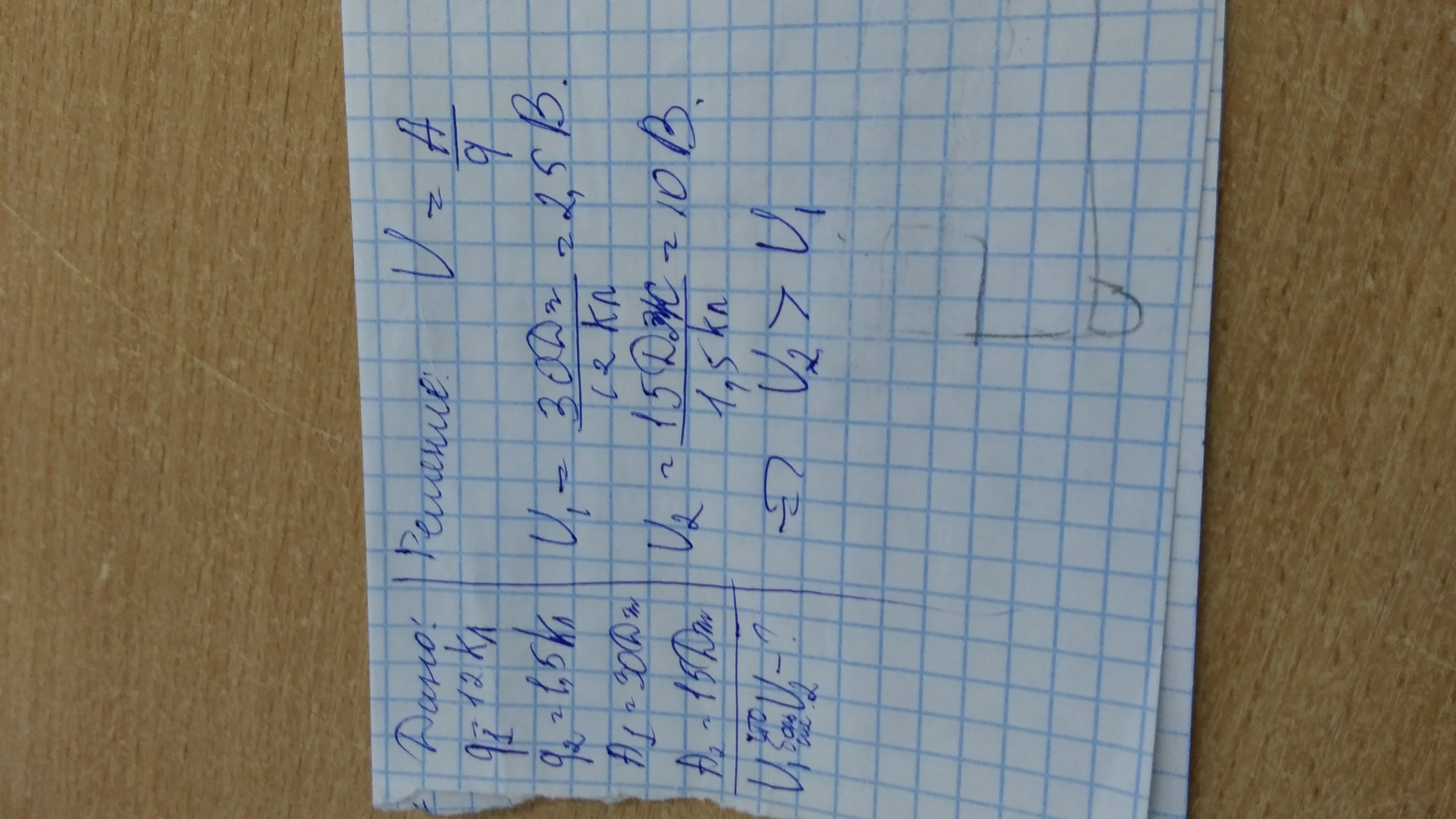 Имеются две электрические цепи. В первой при перемещении силами электрического поля 12 Кл электричества выполняется работа в 30 Дж, а во второй при перемещении 1,5 Кл - 15 Дж. В какой электрической цепи напряжение больше и во сколько раз?