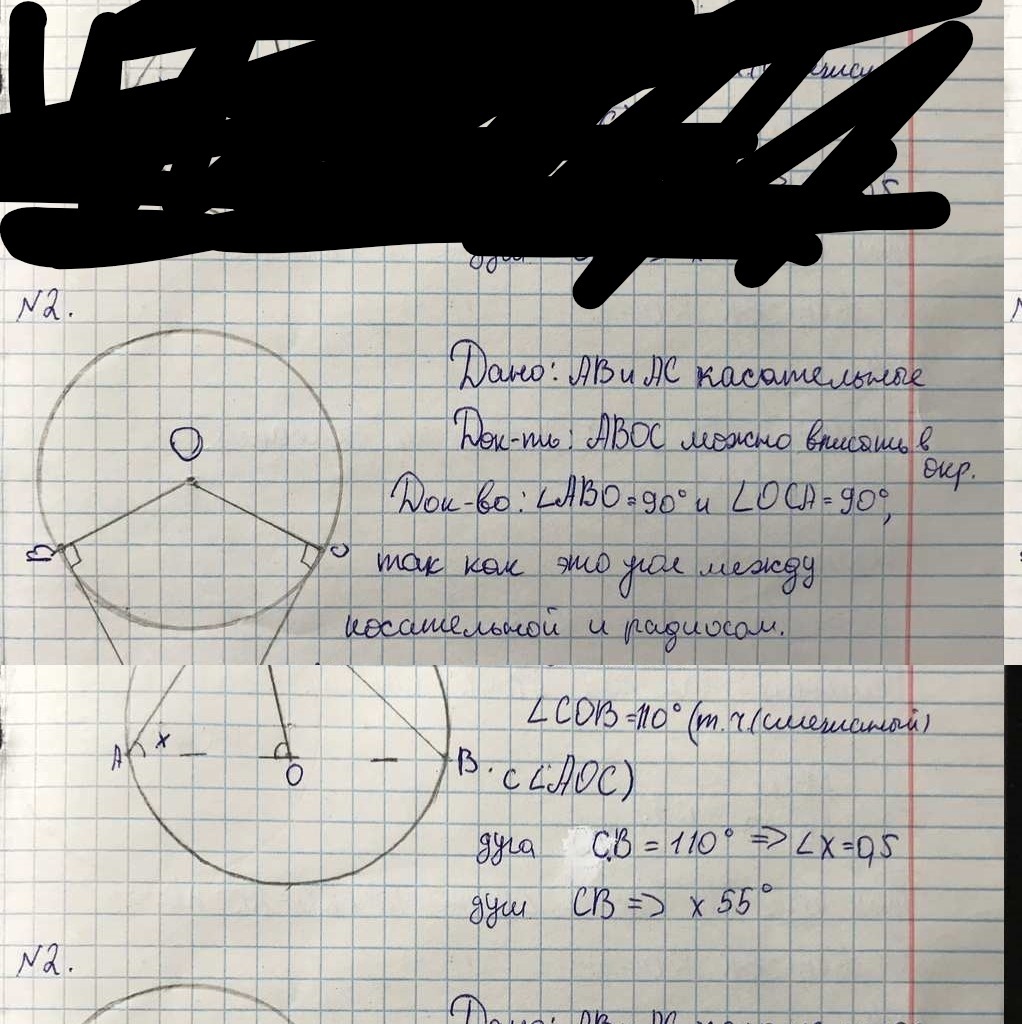 СРОЧНО. Дам 50 баллов. Из точки А, которая лежит вне окружности с центром в точке О, проведены касательные АВ и АС к этой окружности (В и С – точки касания). Доказать, что четырехугольник АВОС можно вписать в окружность.