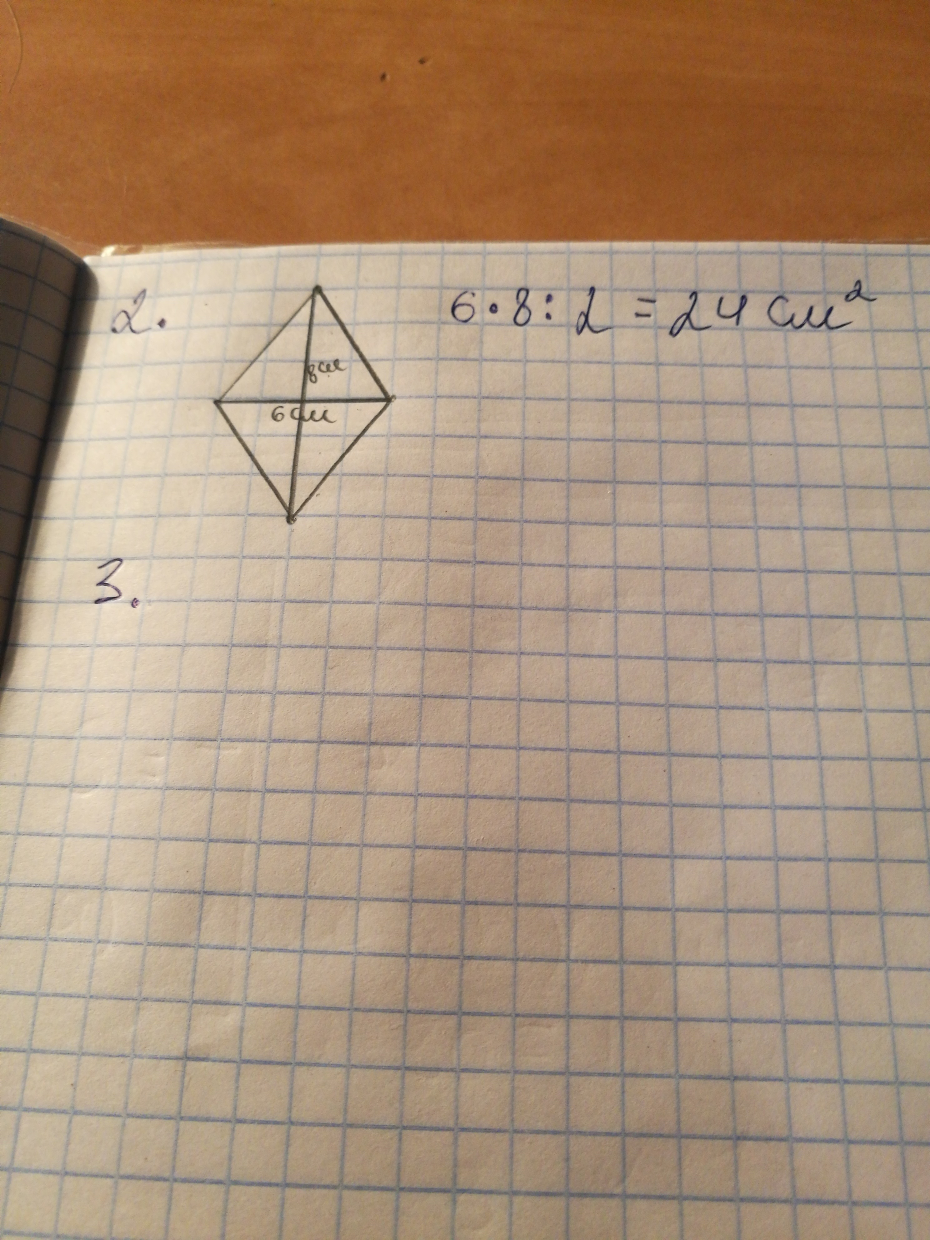 2)Найти площадь ромба,если его диагонали равны 8 см и 6 см.
