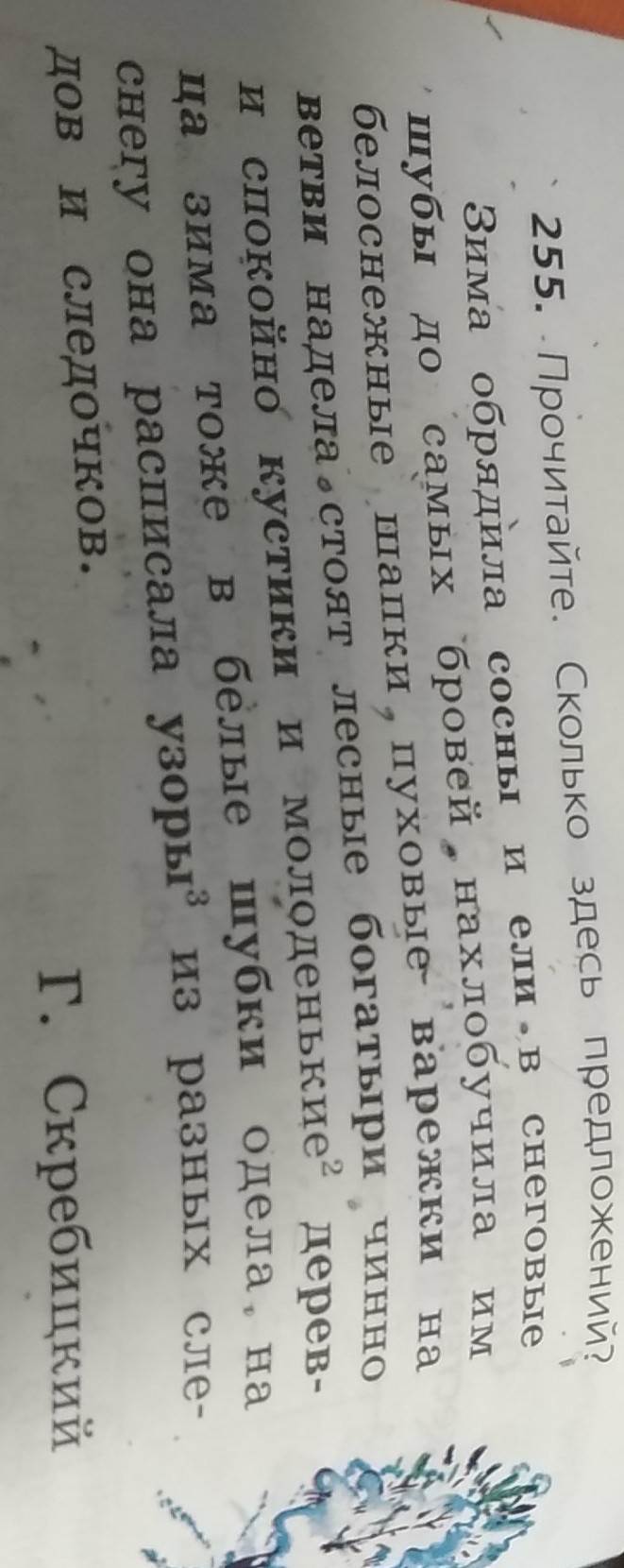 Зима обрядила в сосны и ели в снеговые шубы до самых бровей.Нахлобучила им белоснежные шапки и пуховые варежки на ветви надела.Чинно и спокойно кустики и молоденькие деревца зима тоже в беленькие шубки одела.На снегу она расписала узоры из разных следов и следочков.