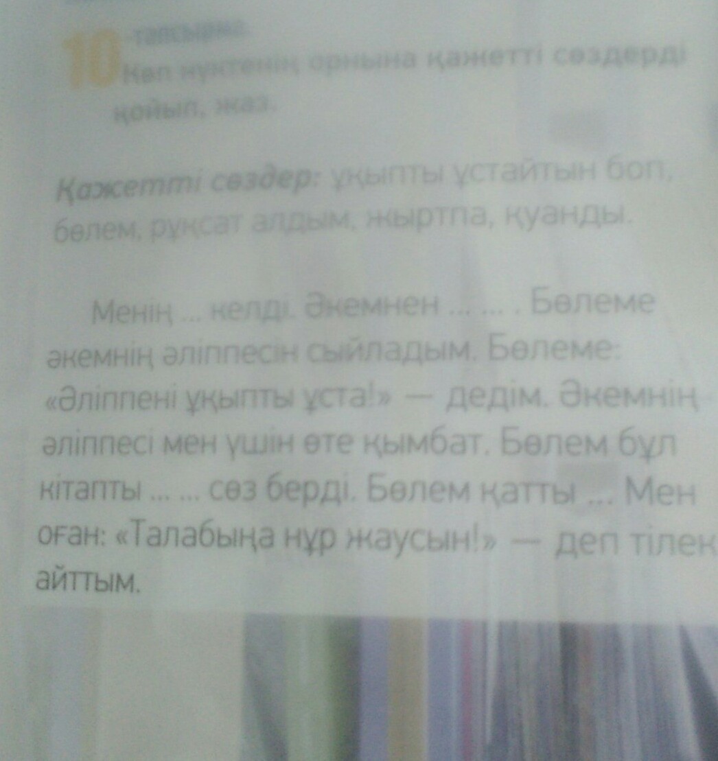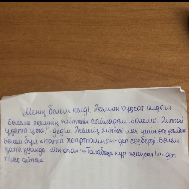 менің бөлем келді.әкемнен рұқсат алдым.бөлеме